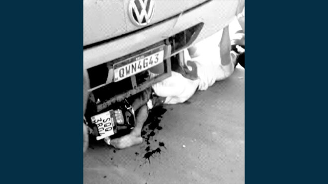 Imagens divulgadas nas redes sociais mostram que a vítima sofreu uma fratura exposta no joelho direito, evidenciando a gravidade dos ferimentos.