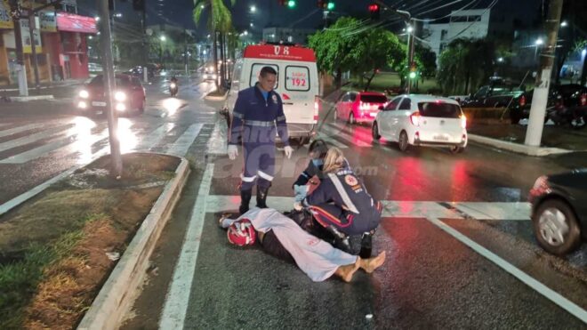 Mas, ao parar sua moto no semáforo, foi atingido por um veículo que trafegava na mesma direção.