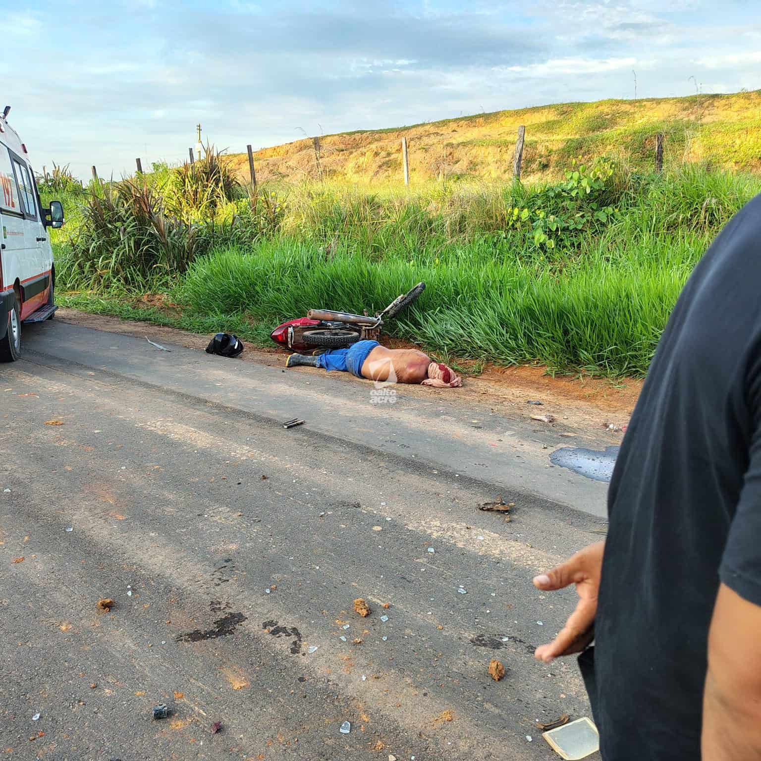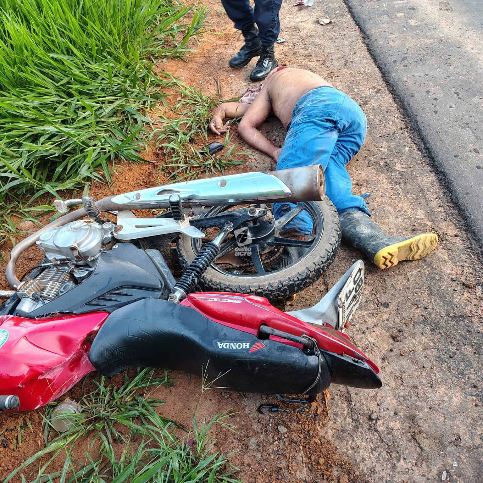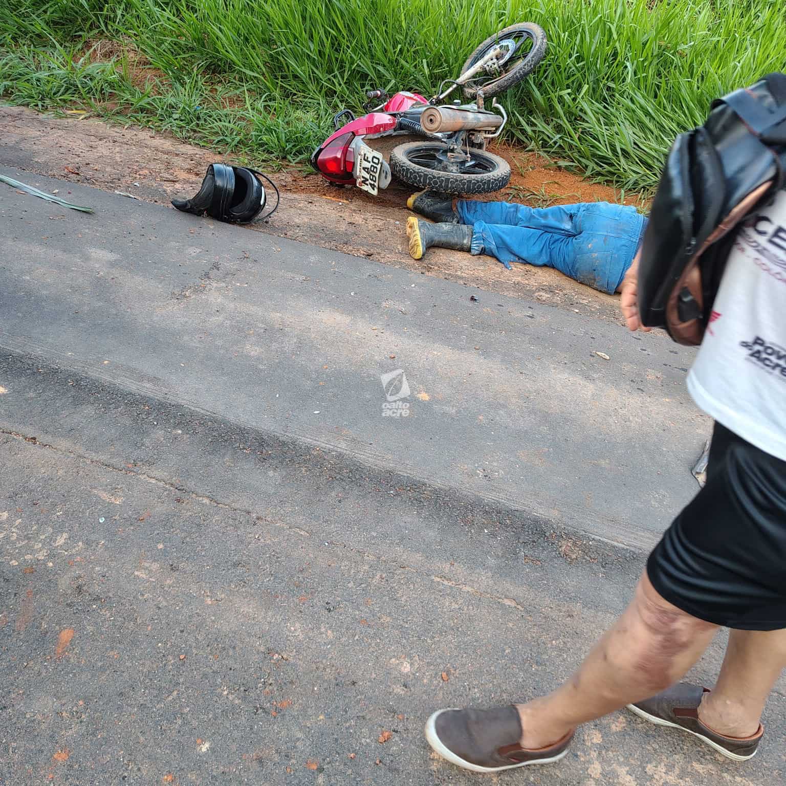 Dois jovens ficaram feridos na tarde desta quinta-feira (4) após um grave acidente de motocicleta registrado na Rodovia AC-475, no trecho que liga os municípios de Acrelândia e Plácido de Castro. O condutor da moto, João Gustavo Muniz, de 19 anos, perdeu o controle do veículo ao passar por uma curva. A motocicleta saiu da pista, arrancou uma estaca e arremessou os dois ocupantes a cerca de oito metros, lançando-os em uma área de pasto.