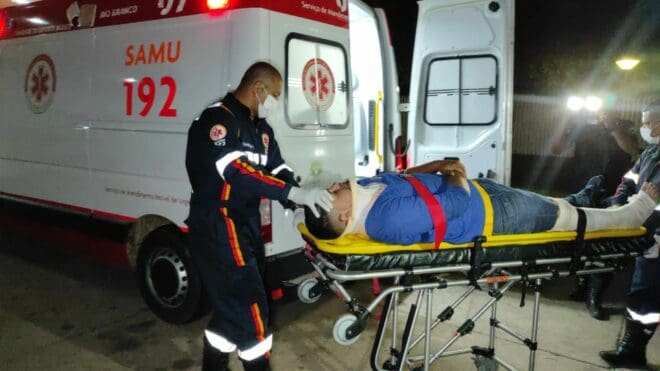 Populares ajudaram o homem e acionaram o Serviço de Atendimento Móvel de Urgência (Samu), que enviou uma ambulância de suporte básico 07. Os paramédicos prestaram os primeiros atendimentos e, depois de conseguir estabilizar o quadro clínico do motociclista, o homem foi encaminhado ao pronto-socorro de Rio Branco, em estado de saúde estável.