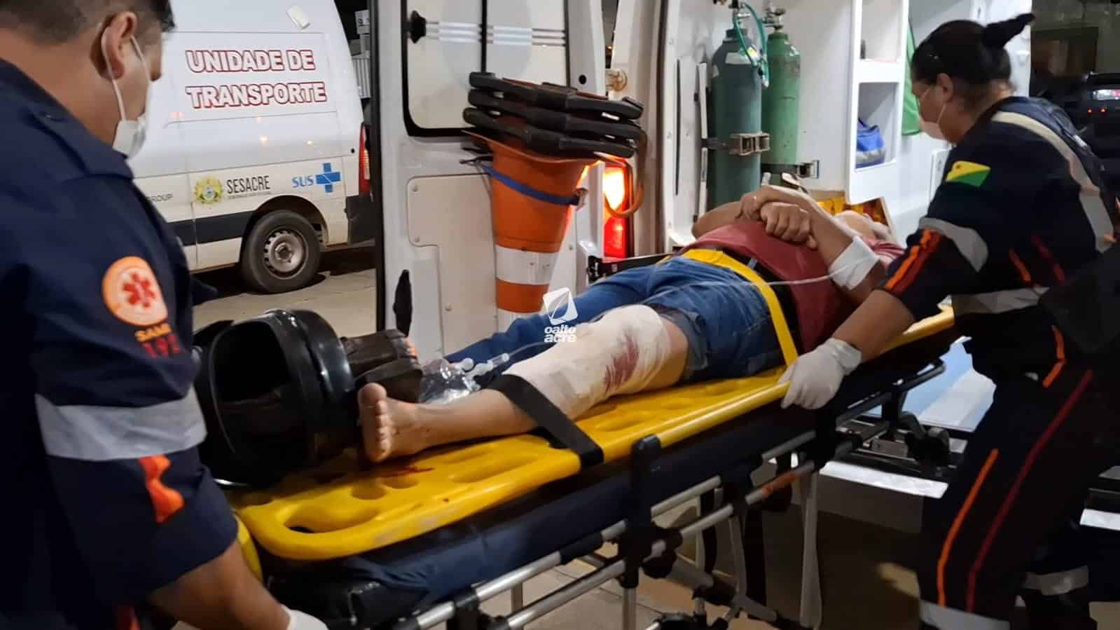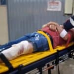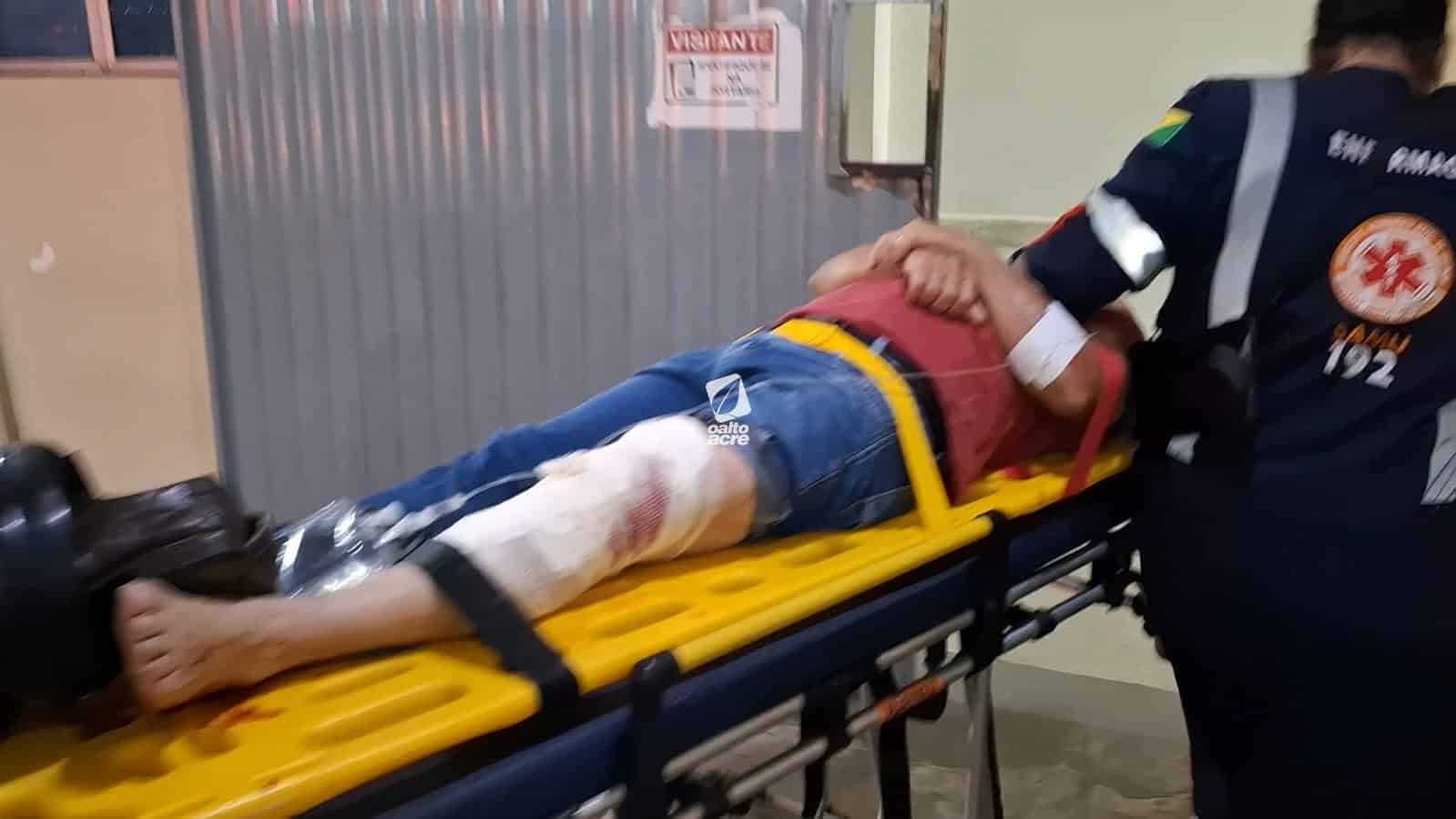 A vítima, identificada como Paulo Souza da Costa, de 56 anos, sofreu uma dilaceração no joelho esquerdo, com um corte profundo de aproximadamente 20 centímetros, além de possível fratura na tíbia e exposição óssea.