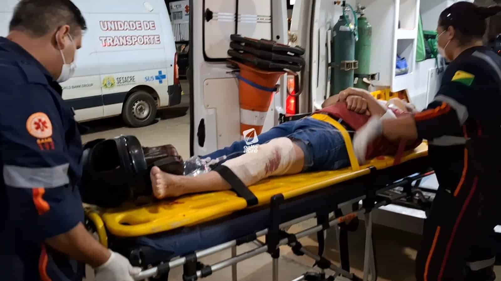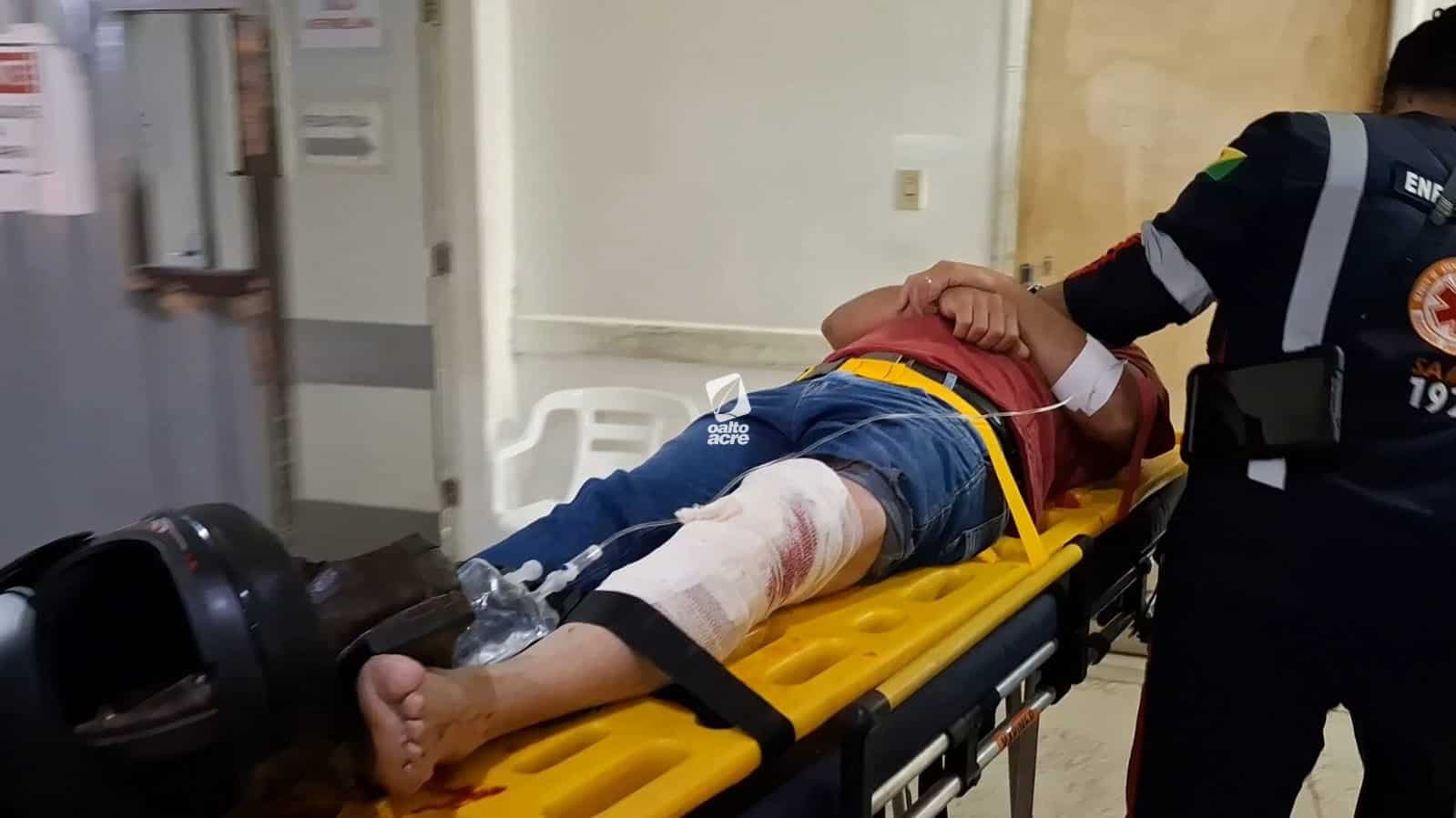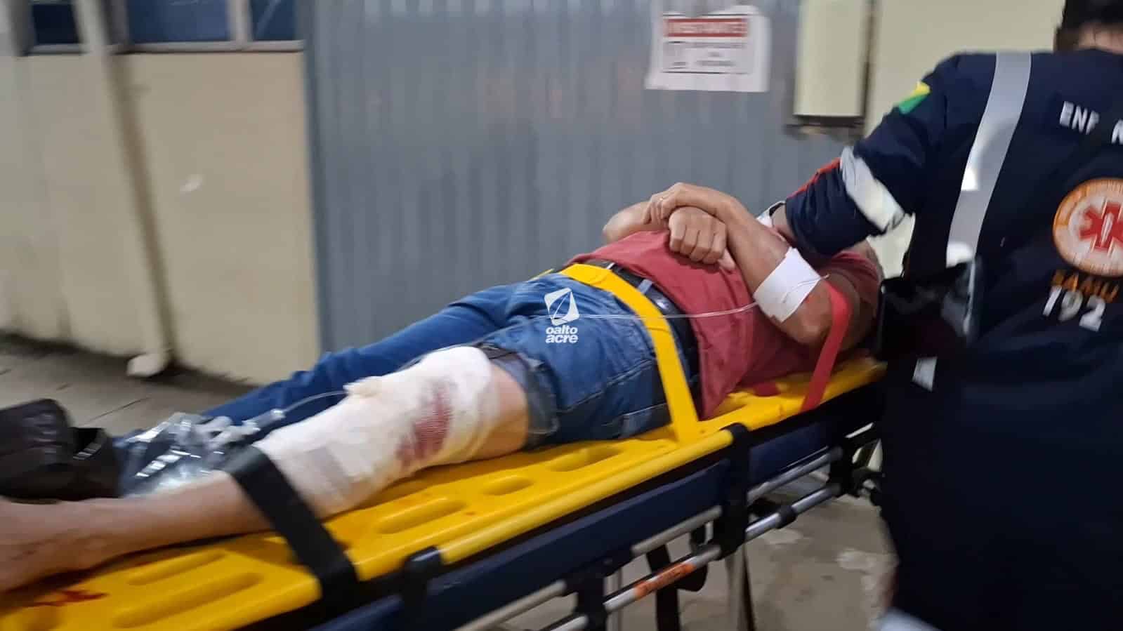 A vítima, identificada como Paulo Souza da Costa, de 56 anos, sofreu uma dilaceração no joelho esquerdo, com um corte profundo de aproximadamente 20 centímetros, além de possível fratura na tíbia e exposição óssea.