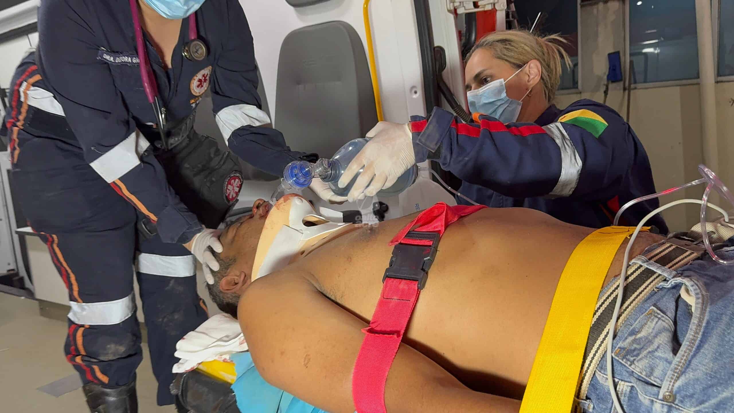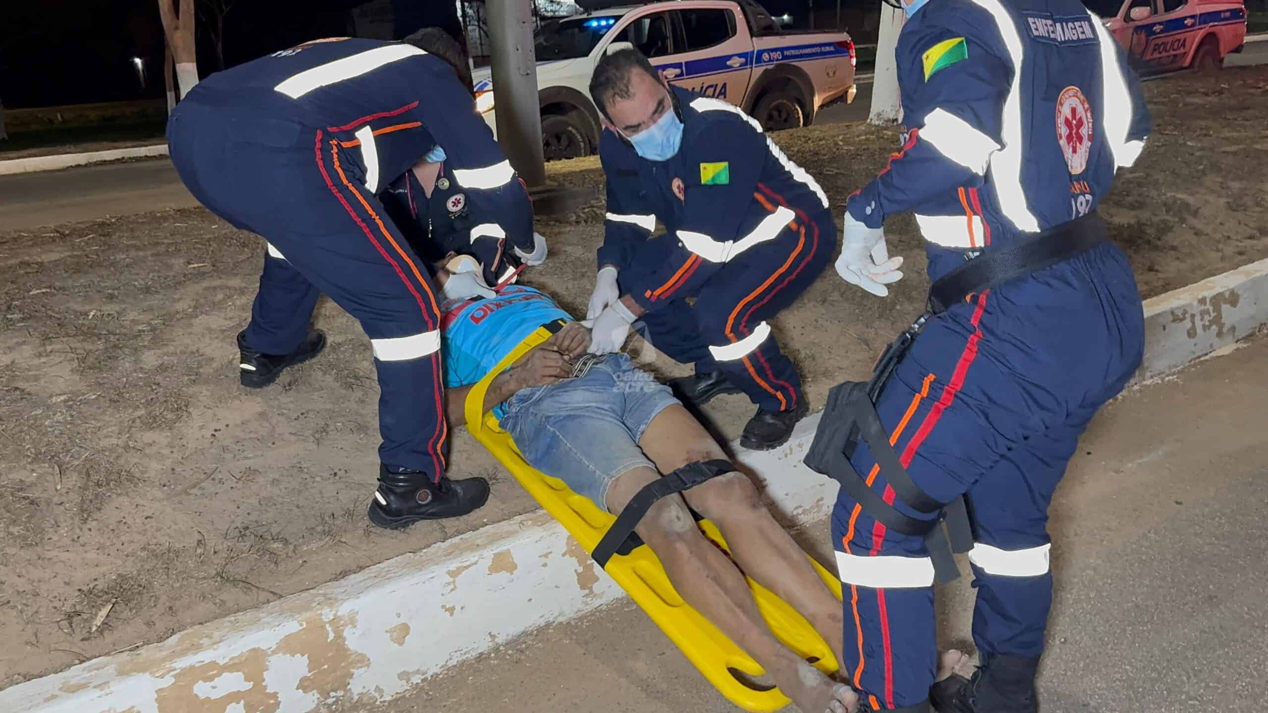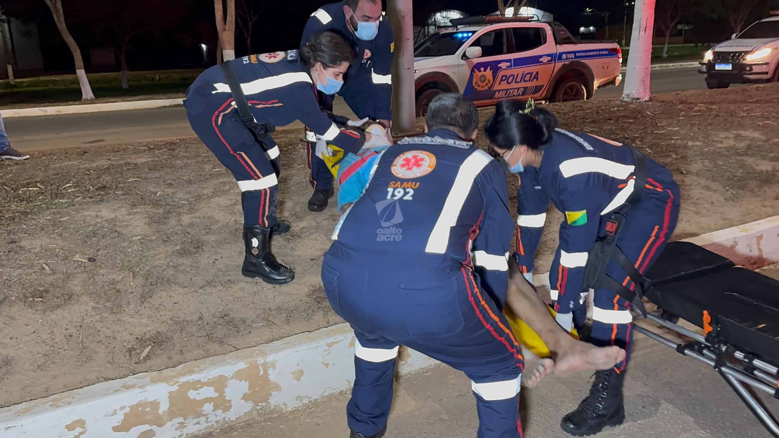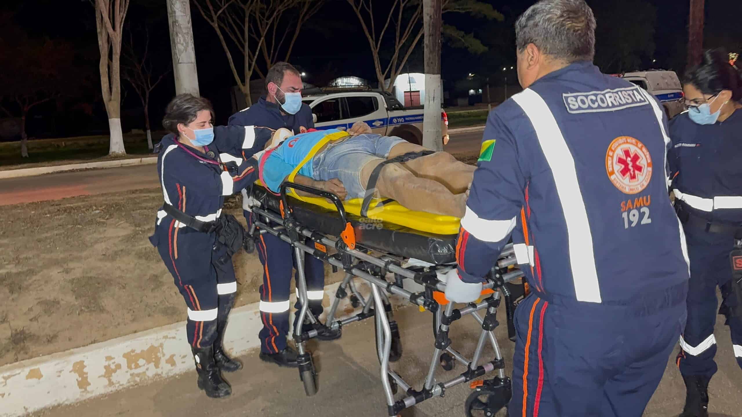 Populares prestaram os primeiros socorros e acionaram o Samu. A vítima recebeu atendimento de uma equipe de suporte básico, mas precisou ser intubada por uma unidade avançada ainda no local, antes de ser encaminhada em estado grave ao pronto-socorro de Rio Branco.