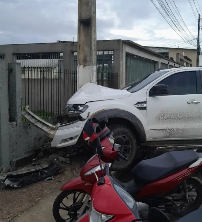 Na manhã deste sábado (3), por volta das 8h, um acidente de trânsito foi registrado na Avenida 25 de Agosto, no bairro Aeroporto Velho, em Cruzeiro do Sul, em frente à Igreja de Nossa Senhora Aparecida. Um veículo modelo Ford Ranger colidiu com um poste de energia elétrica após o condutor perder o controle ao tentar contornar a rotatória nas proximidades da igreja.