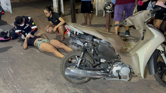 Na noite desta quinta-feira (19), a motociclista Sula Ribeiro de Souza, de 31 anos, foi vítima de um grave acidente de trânsito na Rua Ladislau Ferreira, no bairro Abrahão Alab, em Rio Branco.