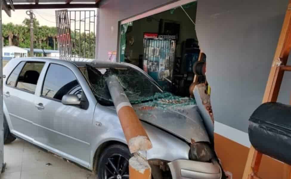 Motorista do veículo estava embriagado,perdeu o controle do veículo, saiu da pista e entrou no estabelecimento. De acordo com o dono da loja, o prejuízo estimado é de R$ 12 mil.