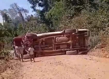 Um acidente foi registrado na manhã desta segunda-feira (18) no ramal da comunidade São Sebastião, localizada na região do alto Rio Iaco, zona rural de Sena Madureira. De acordo com relatos de moradores, o motorista de uma caminhonete perdeu o controle do veículo após colidir com um tronco de árvore, o que resultou no tombamento do carro no meio da estrada.