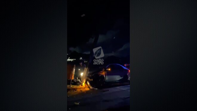 De acordo com informações preliminares, o motorista de um carro perdeu o controle da direção e acabou colidindo violentamente contra um poste de energia elétrica. O impacto foi forte e causou danos significativos na parte dianteira do veículo.