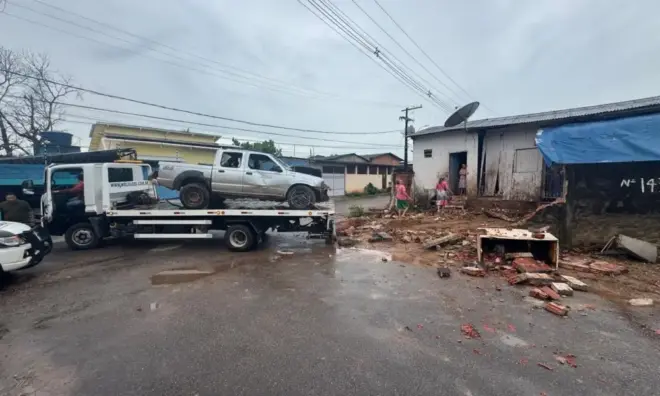 Uma caminhonete colidiu na manhã deste sábado, 3, contra o muro de uma residência localizada na rua Professora Judite Paiva, no bairro Cadeia Velha, em Rio Branco. Segundo relatos de testemunhas, o motorista fugiu do local com a ajuda de duas mulheres, antes da chegada da polícia.