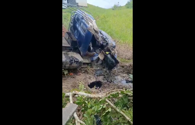A cabine da caçamba ficou completamente destruída, o que chama atenção nas imagens. Mesmo assim, segundo informações repassadas por pessoas que estavam no local, o motorista conseguiu sair com vida, apresentando apenas cortes leves nas costas e em uma das pernas.