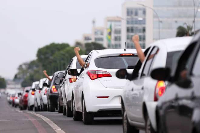 Brasília - Motoristas de aplicativos de todo o Brasil fazem buzinaço em frente ao Congresso em protesto contra o projeto de lei que regulamenta aplicativos de transporte privado, como Uber e Cabify (Marcelo Camargo/Agência Brasil)