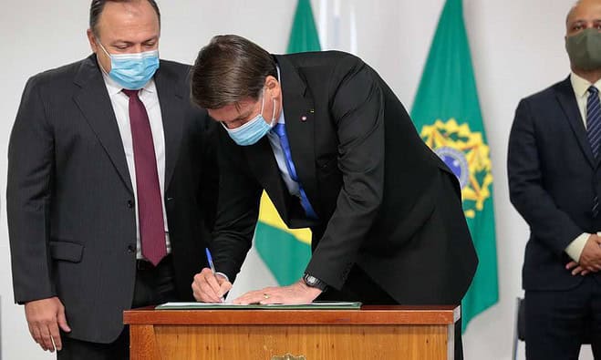 “Assinamos esse protocolo no passado e passamos a fazer parte desse seleto grupo. A nossa contrapartida é basicamente financeira no momento, quase R$ 2 bilhões. Talvez em dezembro ou janeiro exista a possibilidade da vacina e daí esse problema estará vencido poucas semanas depois”, afirmou o presidente, durante cerimônia de assinatura da MP, no Palácio do Planalto.