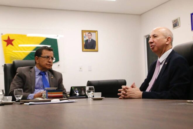 Na manhã desta terça-feira (21), o procurador-geral de Justiça do Ministério Público do Estado do Acre (MPAC), Danilo Lovisaro, e o secretário-geral, Glaucio Oshiro, participaram de uma reunião com o presidente da Assembleia Legislativa do Estado do Acre (Aleac), deputado Luiz Gonzaga, e o primeiro secretário, deputado Nicolau Junior, na sede da Aleac.