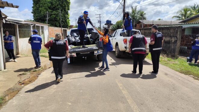 Durante a ação, realizada pela Secretaria de Assistência Social e Direitos Humanos (Sasdh), em parceria com o Centro de Referência de Assistência Social (Cras) e a Defesa Civil, também foram verificadas as necessidades do bairro, como a remoção de lixo, entulhos e a limpeza dos igarapés e córregos.