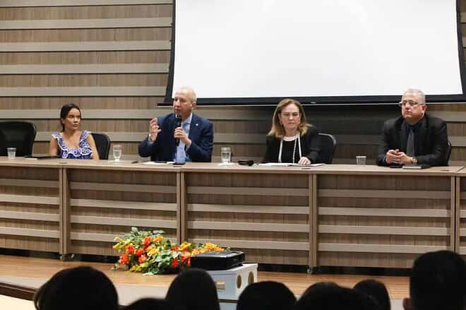 A mesa de abertura também contou com a participação da presidente do TJAC, desembargadora Regina Ferrari, que falou sobre direitos humanos, da advogada Daiana Mathias, falando sobre a temática do autismo, além do desembargador do Tribunal de Justiça do Paraná, Eduardo Cambi, que participou virtualmente. Os debates foram mediados pelo professor do Mestrado de Prestação Jurisdicional, Tarsis Barreto, e abordaram temas relacionados aos direitos e proteção de grupos vulneráveis.