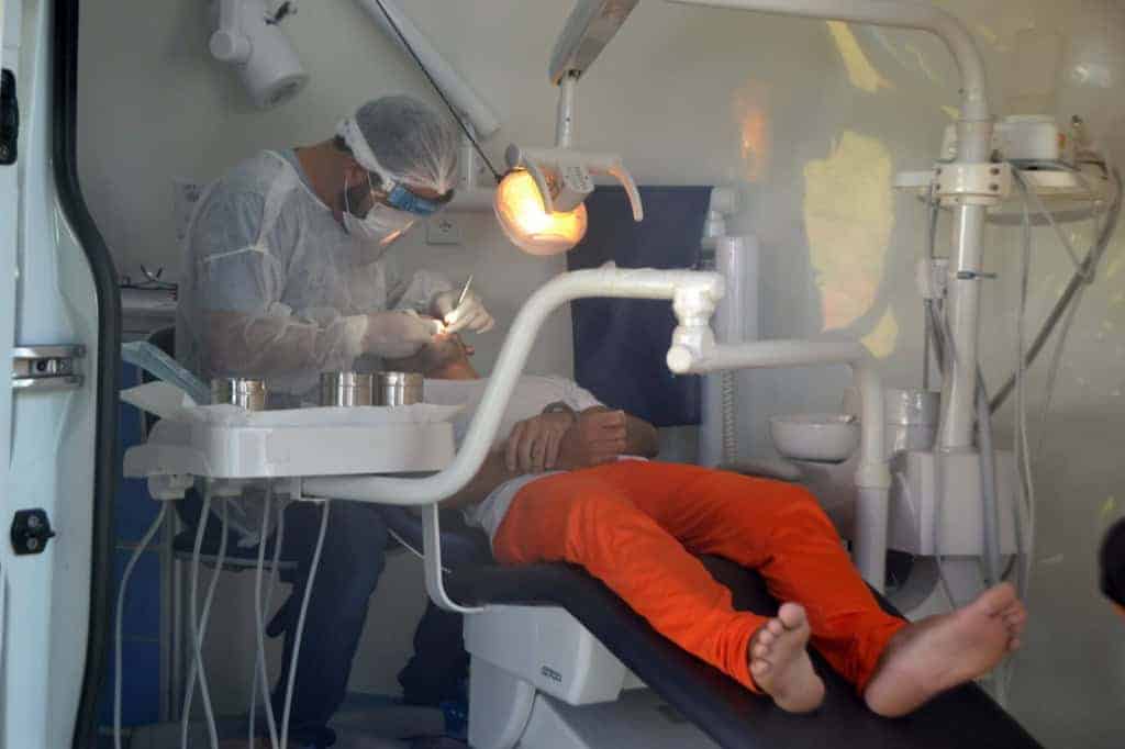 A atividade conta com cinco vans equipadas com profissionais e materiais de uso odontológico para a realização de serviços de extração e restauração. Cada van tem capacidade para atender 15 reeducandos por dia.