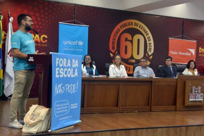 O Ministério Público do Estado do Acre (MPAC), o Fundo das Nações Unidas para a Infância (Unicef) e a Visão Mundial promoveram na quinta-feira (18) o Encontro de Educação do Selo Unicef. O evento, realizado no auditório da sede do MP em Rio Branco, teve como objetivo apoiar os municípios no avanço dos indicadores da infância e na melhoria da educação.