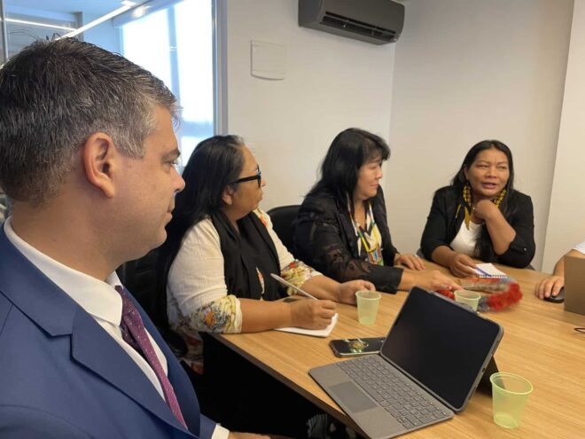 No encontro, houve troca de informações sobre projetos de compra de crédito de carbono em terras indígenas e o assédio de compradores nas aldeias foi citado como uma das grandes preocupações, inclusive por se tratar de assunto complexo.
