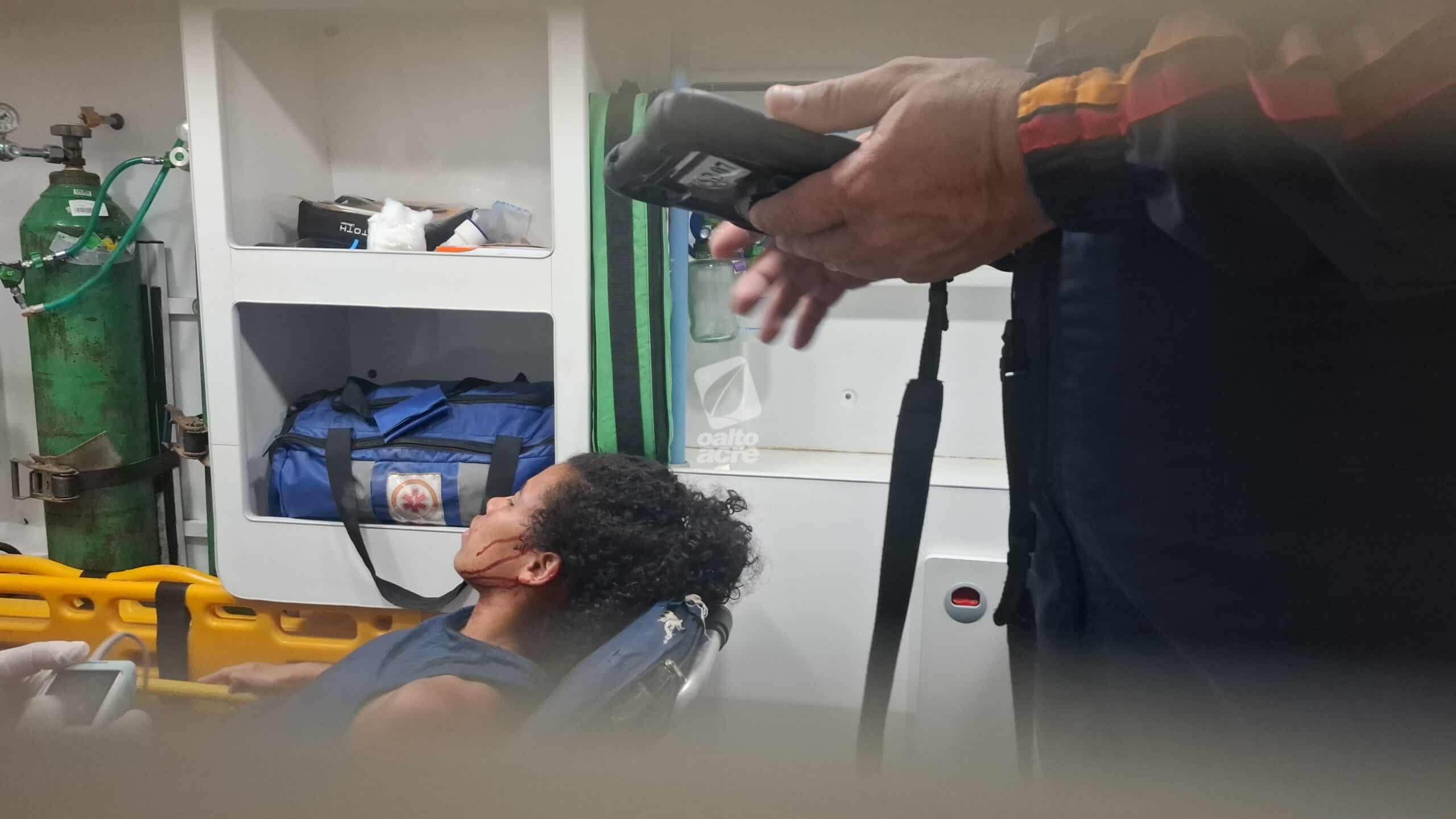 A jovem Lenilda Amarin Gomes, de 25 anos, foi ferida com golpes de canivete pelo ex-marido, Diemerson de Oliveira Lima, de 30 anos, na noite de sexta-feira (10), na Rua Dezenove de Outubro, bairro Boa União, em Rio Branco (AC).