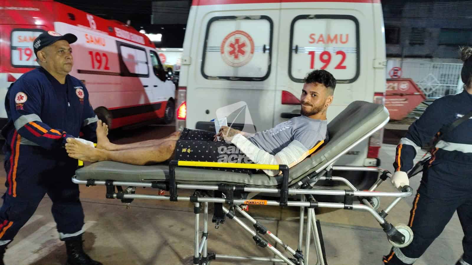 Na unidade hospitalar, o jovem foi entregue ao Setor de Traumatologia, onde os médicos constataram luxação no cotovelo esquerdo, hematomas no tórax posterior e suspeita de fratura em uma das costelas. Apesar das lesões, o estado de saúde da vítima foi considerado estável.