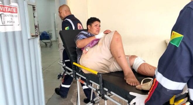 A vítima, identificada como Dieyne do Araujo Nascimento, de 40 anos, foi encontrada em via pública com ferimentos no braço, perna e mão direita. Após receber os primeiros atendimentos e ser estabilizada, ela foi encaminhada ao Pronto-Socorro da capital em estado de saúde estável.