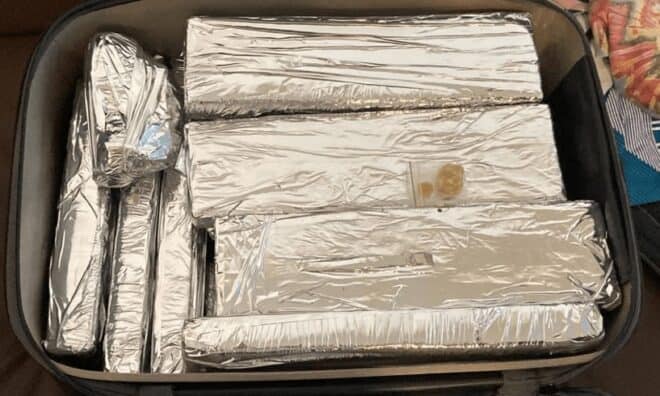 Uma mulher de identidade não revelada foi presa em flagrante nesse final de semana ao desembarcar no aeroporto de Rio Branco portando aproximadamente 16 quilos de maconha. A grande quantidade de entorpecente estava envolta de papel alumínio, dentro de uma mala de viagem, sob algumas peças de roupa.