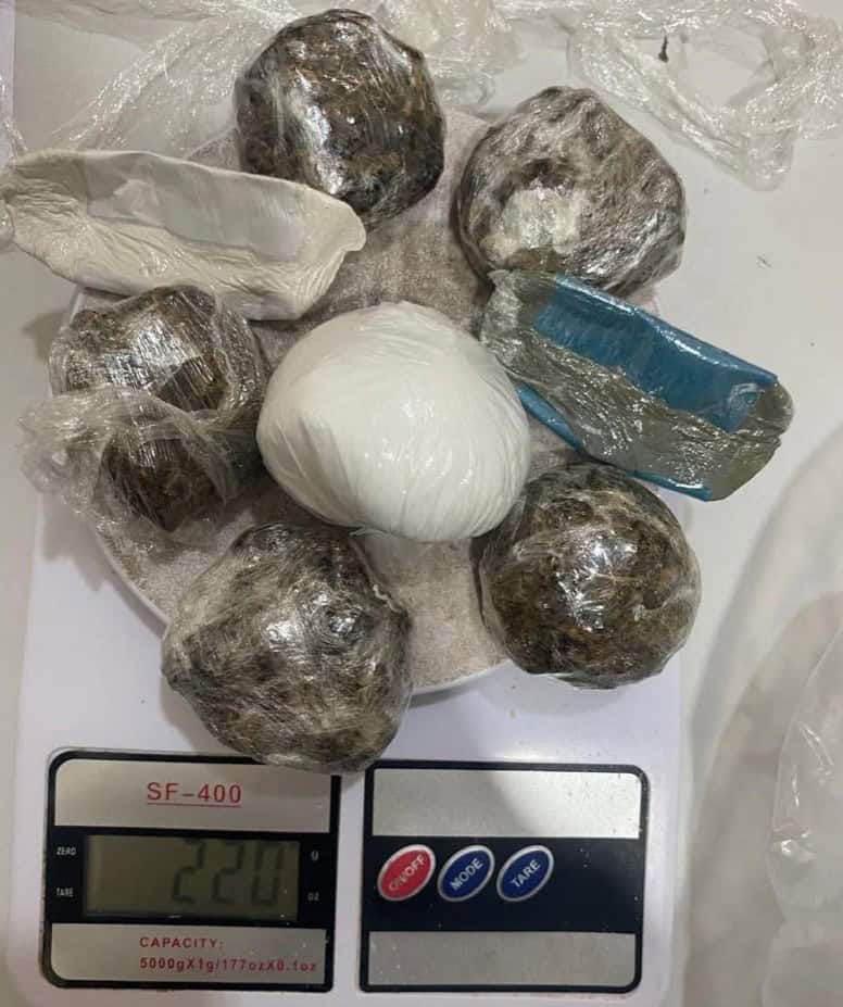 Material apreendido: 220g de substância entorpecente (tipo não divulgado)