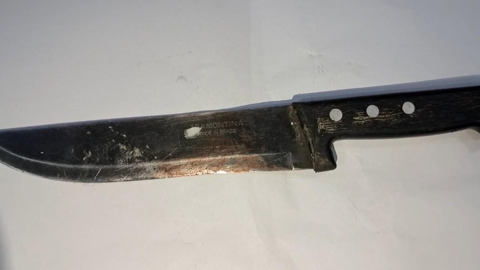 Faca supostamente usada por mulher para cortar o pênis do marido em Cacoal, RO — Foto: Reprodução