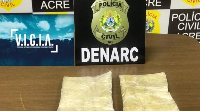 Na manhã dessa quarta-feira (12), Policiais Civis da Delegacia Especializada de Combate ao Narcotráfico da Polícia Civil do Estado do Acre efetuaram a prisão em flagrante de uma mulher que transportava consigo mais 1,1 Kg de cocaína.