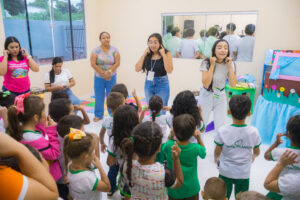 A programação de entrega prosseguiu em clima festivo, com apresentações de fantoches e sessões de contação de histórias destinadas ao público infantil. Participaram das atividades alunos da Escola Municipal Sebastião Brandão e da Escola Cívico-Militar Joana Ribeiro Amed.