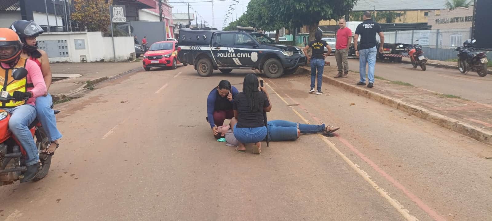 Com a queda, Jéssica sofreu escoriações e apresentava suspeita de fratura em uma das pernas. Populares e policiais que estavam na delegacia ajudaram a interromper o trânsito até a chegada da equipe do Serviço de Atendimento Móvel de Urgência (SAMU).