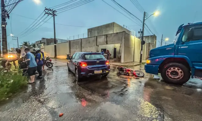 A vítima sofreu suspeitas de fratura no pé e no braço esquerdo e foi socorrida inicialmente por populares. O motorista do caminhão abandonou o local, deixando o veículo no ponto do acidente. A ambulância 04 do Samu realizou o resgate e encaminhou a mulher para uma unidade de saúde. As circunstâncias do acidente serão apuradas pela polícia.