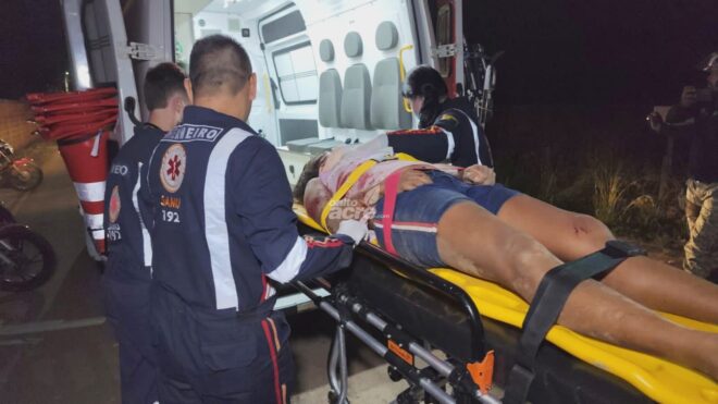 Ozanir Oliveira de Lima, de 41 anos, grávida, ficou em estado gravíssimo após ser atropelada por um caminhão caçamba na noite deste sábado (17), no Ramal da Judia, bairro Belo Jardim I, em Rio Branco. Segundo relatos de testemunhas, Ozanir estava parada em sua bicicleta às margens do ramal quando o motorista de um caminhão caçamba, que seguia no sentido centro-bairro, perdeu o controle da direção. O veículo, que possivelmente era conduzido por um motorista embriagado, colidiu na cobertura da frente de um comércio e atropelou a mulher.