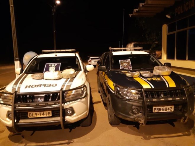 Os passageiros foram convidados a desembarcar e informados que passariam por uma abordagem de rotina. Quando policiais do Gefron e Policiais Rodoviários Federais passaram a fazer buscas nas bagagens do interior do ônibus, foram encontrados em uma das poltronas, um travesseiro, duas caixas de papelão contendo invólucros com entorpecentes, carregados por duas mulheres.