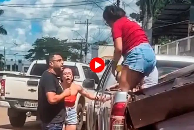 Nas imagens registradas por um motoboy, duas mulheres são vistas na carroceria da camionete, onde está uma cama e um colchão. O casal discute ao lado do veículo depois que, segundo as informações, o homem atravessou sua própria camionete na frente daquela dirigida pela mulher, na tentativa de impedi-la de sair do local.
