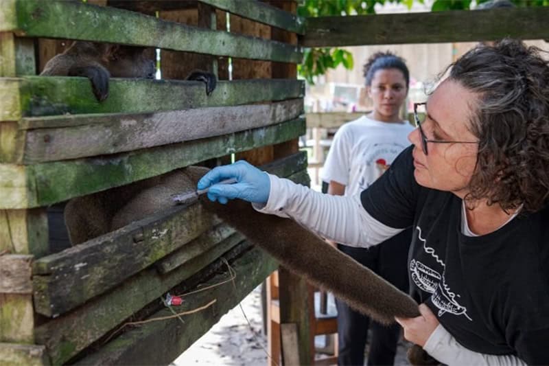 A 529 km de Manaus, no Instituto de Desenvolvimento Sustentável Mamirauá, em Tefé, a doutora em Epidemiologia Veterinária, Louise Maranhão, realiza pesquisas sobre doenças que são transmitidas de animais para humanos, ou de humanos para os animais, conhecidas cientificamente como Zoonoses. O trabalho é realizado a partir da coleta e análise de sangue dos animais selvagens e domésticos.
