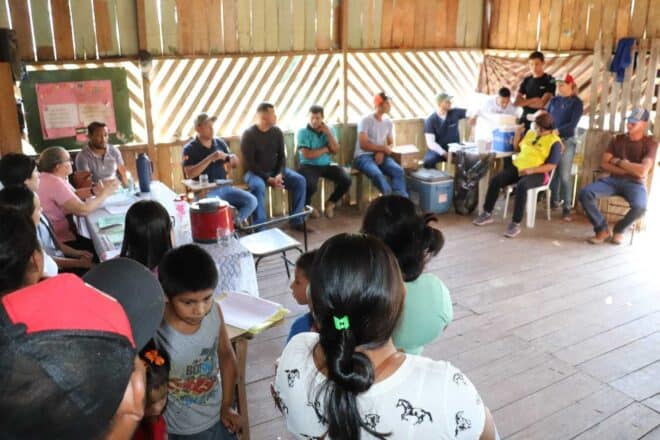 O prefeito Jerry Correia, acompanhado do presidente da Câmara Wendel Marques e da secretária de Saúde Antônia Marinho, estiveram participando de atividade na comunidade Natal localizando na Reserva Extrativista Chico Mendes no ramal do Katianã.