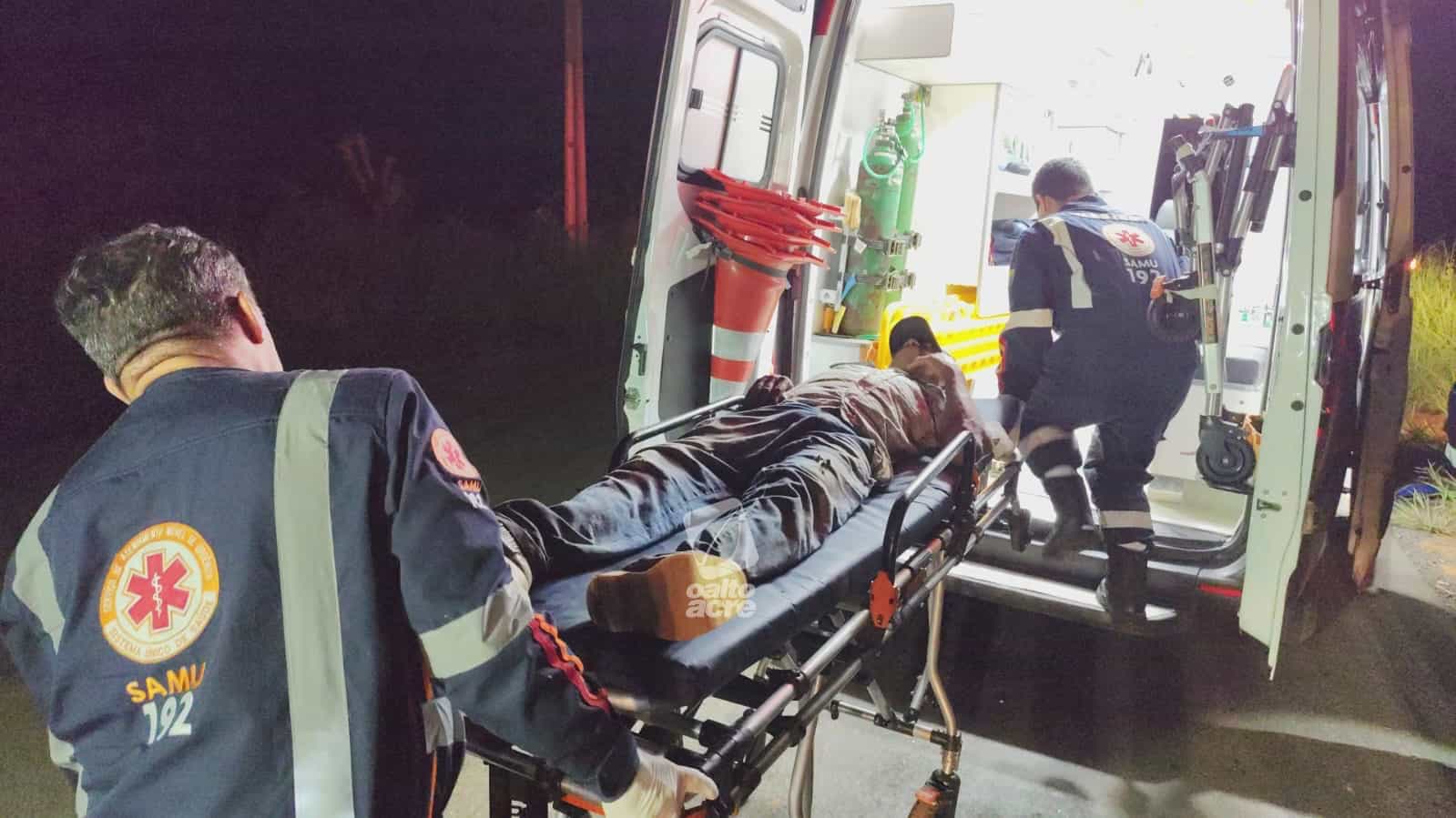 Acidente ocorreu na noite de quarta-feira (4), no km 13 da rodovia AC-10; vítima foi socorrida pelo Samu e levada ao Pronto-Socorro de Rio Branco