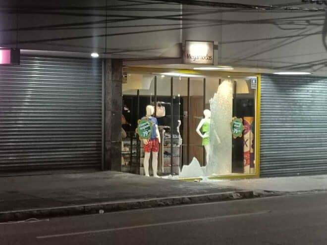 A ação do bandido aconteceu durante a madrugada desta quarta-feira, 8. Segundo as informações após usar uma barra de ferro para quebrar parede de vidro da empresa, localizada na Avenida Getúlio Vargas, a poucos metros do Palácio Rio Branco, o bandido entrou na loja e furtou uma grande quantidade de roupas. Mas, quando pretendia fugir do local do crime foi surpreendido por policiais militares e acabou.
