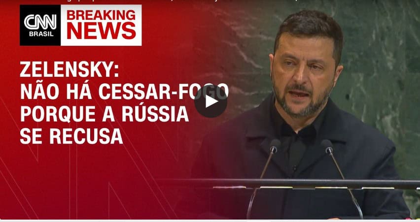 O presidente da Ucrânia, Volodymyr Zelensky, afirmou nesta quarta-feira (24) que não há um cessar-fogo na guerra em seu país pois a Rússia se recusa a chegar a um acordo, durante discurso na Assembleia Geral da ONU.