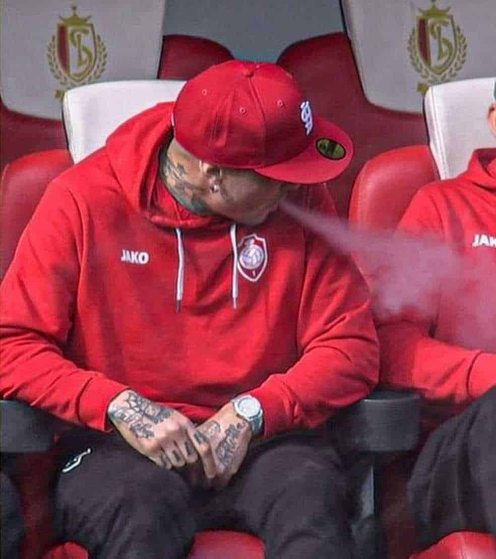 Naiggollan fuma no banco de reservas antes de jogo com o Standard — Foto: Reprodução/Twitter