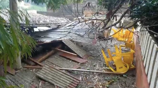 Um dos locais atingidos pelos fortes ventos foi o restaurante Quintal do Osvaldo, localizado na Rua 1º de maio, bairro Seis de Agosto.