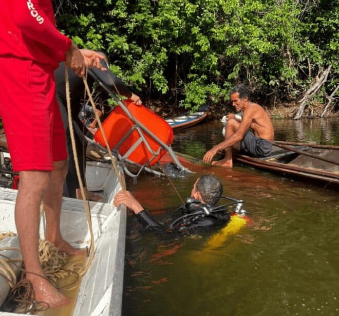 Após o incidente, equipes de mergulhadores do Corpo de Bombeiros se mobilizaram para recuperar os bens que estavam a bordo. Foto: cedida