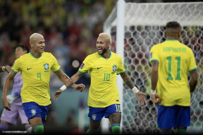 Com o gol de pênalti marcado na goleada contra a Coreia do Sul, Neymar marcou em três Copas do Mundo pela Seleção Brasileira. O craque marcou quatro gols em 2014, dois em 2018 e agora um em 2022. Ao todo, soma sete gols em 12 jogos de mundial disputados.