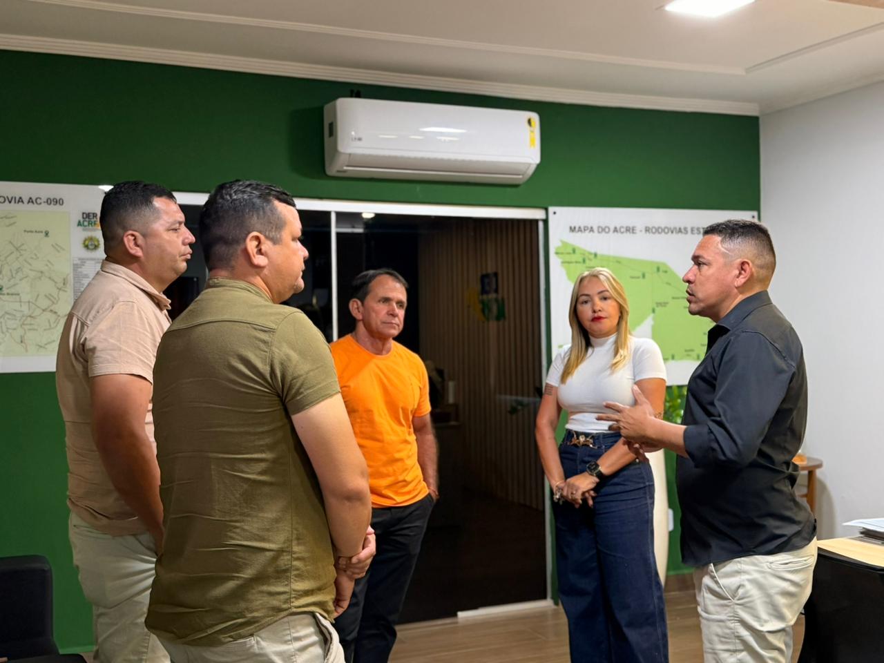 O prefeito de Assis Brasil, Jerry Correia, acompanhado dos vereadores Wendell Marques, Jura Pacheco e Gilson Boiadeiro, realizou uma visita institucional à sede do Deracre, onde participou de uma importante reunião com a presidente do órgão, Sula Ximenes.
