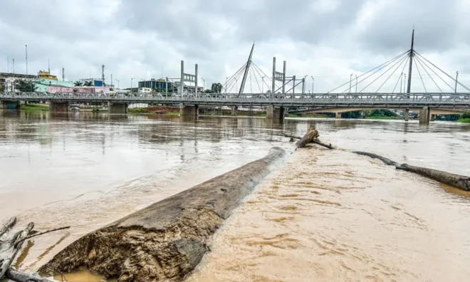 O nível do Rio Acre continua a subir em Rio Branco, atingindo a marca de 15,24 metros às 12h desta sexta-feira, 14, segundo boletim divulgado pela Defesa Civil do município. O aumento progressivo do nível do rio tem mantido as autoridades em alerta, já que a cota de transbordo, quando o rio começa a transbordar, é de 14,00 metros. A cota de alerta, estabelecida em 13,50 metros, foi ultrapassada desde o último final de semana.