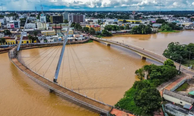 O Rio Acre registrou uma elevação no seu nível durante a manhã deste domingo, 16, atingindo 15,80 metros às 9h, segundo boletim divulgado pela Defesa Civil do Município. O valor segue acima da cota de transbordo, estabelecida em 14,00 metros.