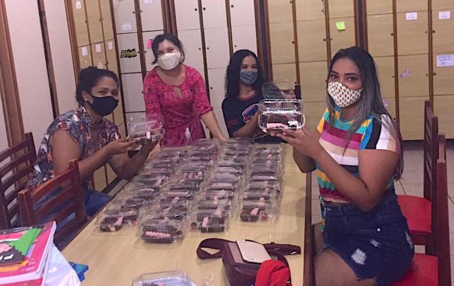 Dinheiro arrecadado com a venda de doces, possibilitou a compra de material para confeccionar marmitas (Foto: Arquivo Pessoal)