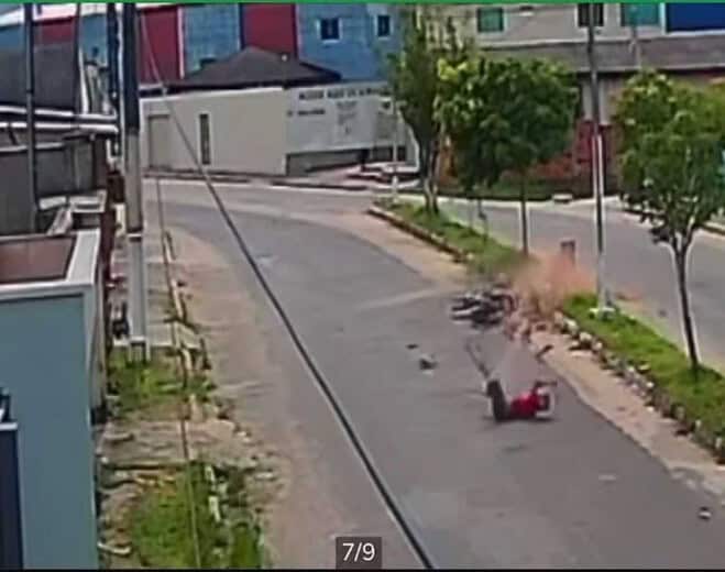 Um circuito de câmeras flagrou um motociclista que se chocou violentamente contra uma caixa de lixo, em Cruzeiro do Sul, interior do Acre, nesta segunda-feira (2).