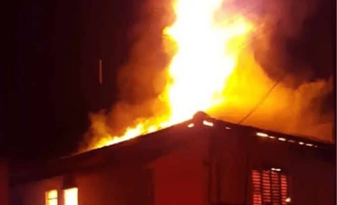 O incêndio ocorreu durante uma discussão entre a mulher e seu marido, que a agrediu com um golpe de capacete na cabeça antes de sair de casa. Ao retornar mais tarde, o marido encontrou a residência em chamas.